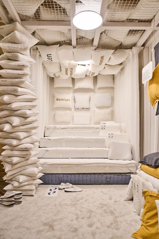 Każdy z tych elementów został starannie zaprojektowany przez projektantów i projektantki IKEA, aby oddziaływać na zmysły i inspirować odwiedzających do tworzenia własnych rozwiązań na dobry sen.