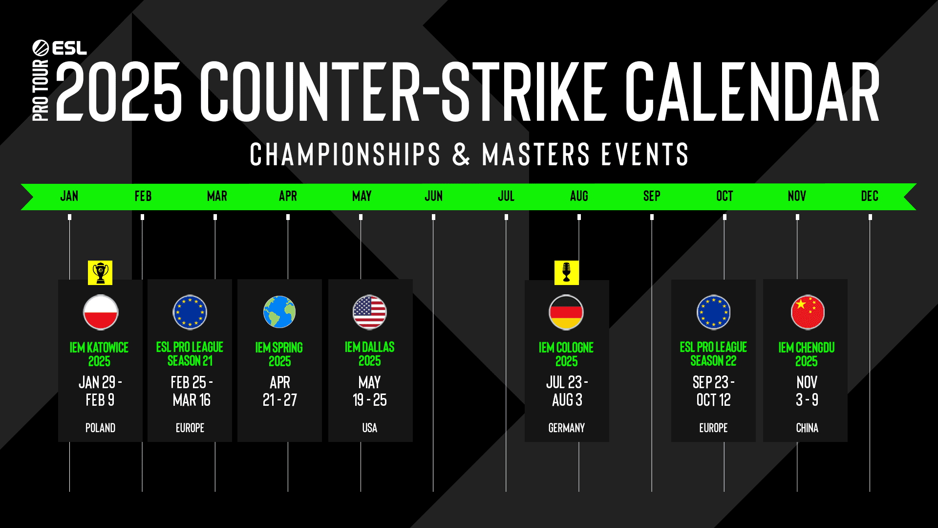 ESL FACEIT Group (EFG), lider na rynku esportu i elektronicznej rozgrywki, ogłosił szczegóły dotyczące najnowszej odsłony ESL Pro Tour (EPT) 2025 – cyklu rozgrywek Counter-Strike 2 (CS2). Program łączy szereg profesjonalnych turniejów ESL w CS2 w spójny i zrównoważony ekosystem, zapewniając fanom, zespołom i partnerom na całym świecie rywalizację na najwyższym poziomie.
