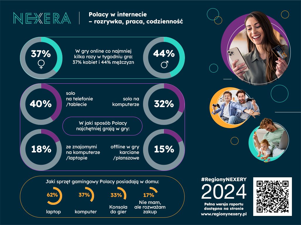 Internet: Połowa polskich internautów rozważa zmianę dostawcy internetu po wygaśnięciu aktualnej umowy, przy czym 62% zwiększyłoby wówczas prędkość łącza, wynika z raportu firmy Nexera. 9 na 10 Polaków uważa się za częstych użytkowników sieci. Co czwarty polski internauta przyznaje, że korzysta z rozwiązań AI często lub bardzo często. 32% Polaków codziennie ogląda w internecie rozrywkowe treści wideo; 40% internautów co najmniej kilka razy w tygodniu gra w gry online. 24% użytkowników internetu przyznaje, że nie ma konta na żadnej platformie streamingowej. 59% badanych regularnie korzysta z e-sklepów, a częste zakupy online robi 59% badanych.