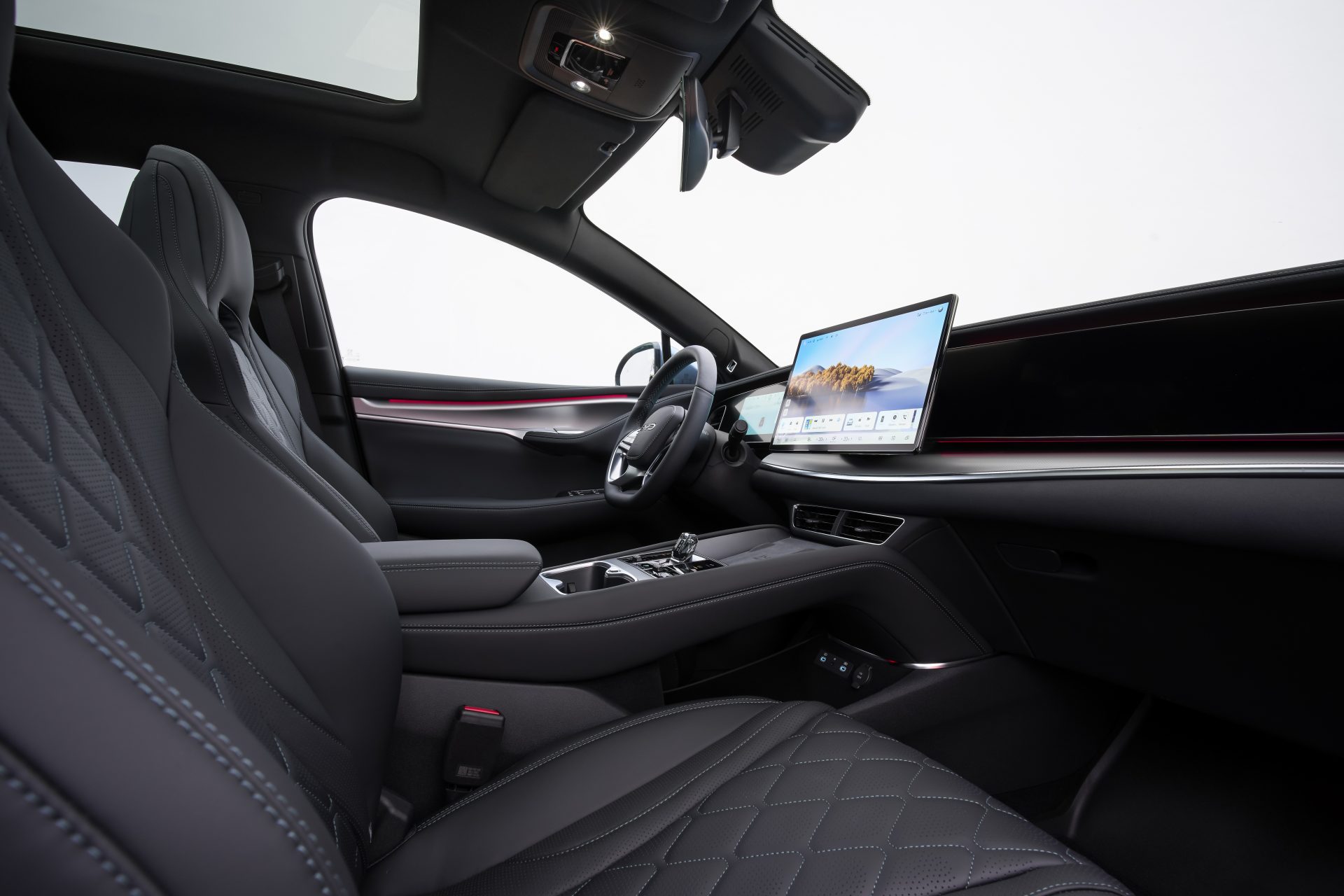 Wnętrze BYD TANG oferuje wyjątkowe doświadczenie dla pasażerów dzięki luksusowym wykończeniom, które harmonijnie łączą komfort z nowoczesnymi technologiami. Elegancko zaprojektowana deska rozdzielcza, wykonana z materiałów najwyższej jakości, z miękkimi w dotyku powierzchniami i gustownymi detalami, natychmiast wywołuje poczucie wyrafinowania i przestronności.