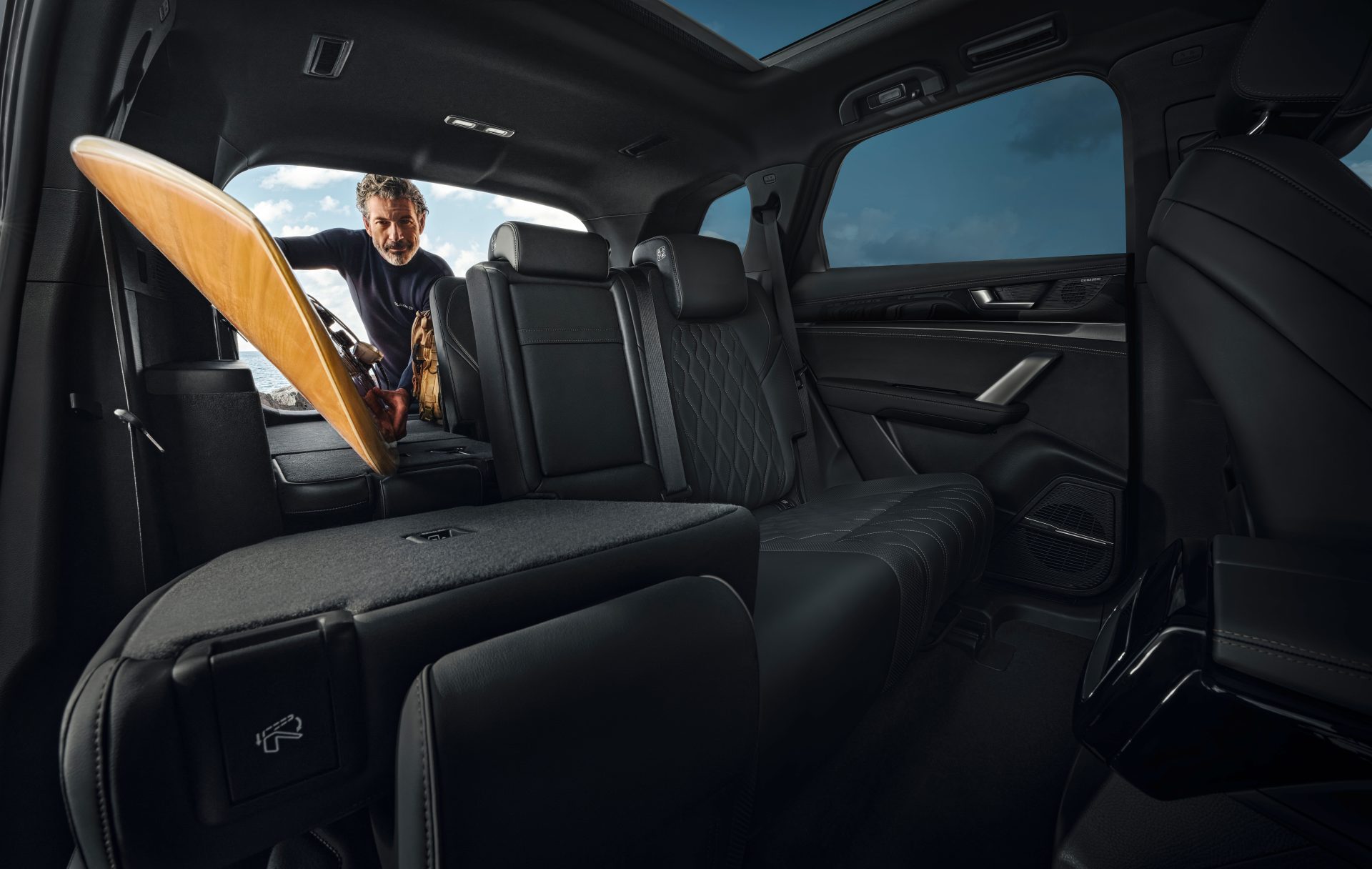 Podwyższona konstrukcja SUV-a SEALION 7 zapewnia przestrzeń w kabinie i praktyczność, co czyni go szczególnie atrakcyjną opcją rodzinną dla europejskich klientów. Całkowita długość 4 830 mm i duży rozstaw osi wynoszący 2 930 mm (o 10 mm dłuższy niż w modelu BYD SEAL), a także całkowicie płaska tylna podłoga e-Platformy 3.0, zapewniają miejsce w kabinie dla pięciu dorosłych osób. Konstrukcja Cell-to-Body i kompaktowy akumulator Blade oznaczają, że podłoga pozostaje stosunkowo cienka jak na pojazd elektryczny o tak dużym zasięgu, zapewniając dużą ilość miejsca nad głową, pomimo drapieżnej linii dachu.