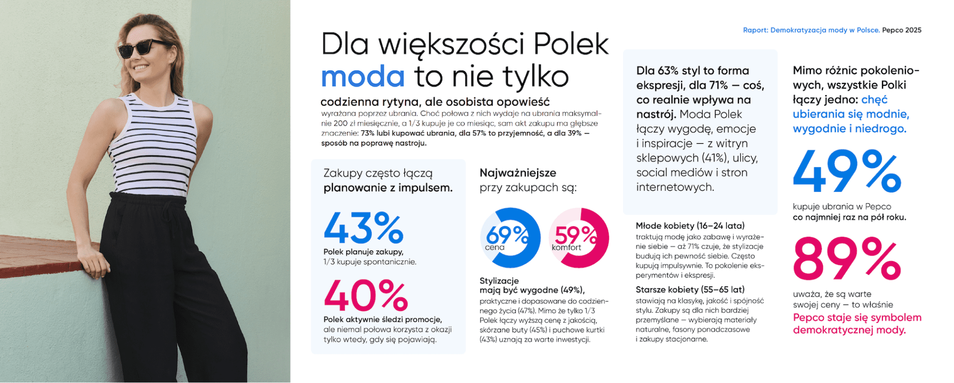 Jak zmienia się modowa codzienność Polek? Czego naprawdę kobiety oczekują od ubrań? Czy przystępna cena może iść w parze z jakością i stylem? Na te pytania odpowiada najnowszy raport „Demokratyzacja mody w Polsce. Pepco 2025”.