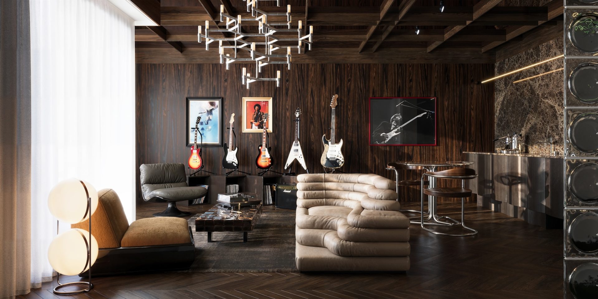 Fotografia, film, a teraz – muzyka. Apartament „Guitar Heroes” już w samej nazwie nawiązuje do stylu muzycznego uwielbianego przez miliony osób na całym świecie. Wnętrza mają być odważne i bardzo designerskie. Tak, by każdy poczuł się jak w apartamencie prawdziwej gwiazdy rocka. Pomogą w tym z pewnością oryginalne, sygnowane fotografie wybitnych rockowych muzyków zdobiące wnętrza apartamentu, a także kolekcja prawdziwych, profesjonalnych gitar, z których będzie mógł korzystać przyszły właściciel.
