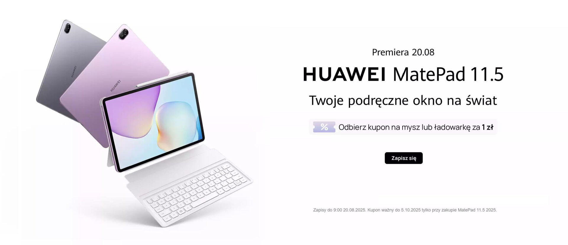 Huawei: Już 20 sierpnia na polskim rynku pojawi się HUAWEI MatePad 11.5 2025 – tablet z matowym ekranem nowej generacji.