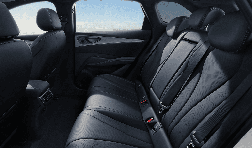 Przednie fotele oferują elektryczną regulację z funkcją zapamiętywania ustawień, a także wentylację i podgrzewanie, łącząc wygodę z odpowiednim podparciem. Tylna część kabiny zapewnia przestronność porównywalną z modelami z wyższego segmentu, dzięki czemu każde miejsce staje się strefą osobistego komfortu. Wszystkie siedzenia wykończone są wysokiej jakości skórą wegańską o eleganckiej fakturze i wyposażone w regulowane zagłówki, które dodatkowo zwiększają wygodę i podparcie.