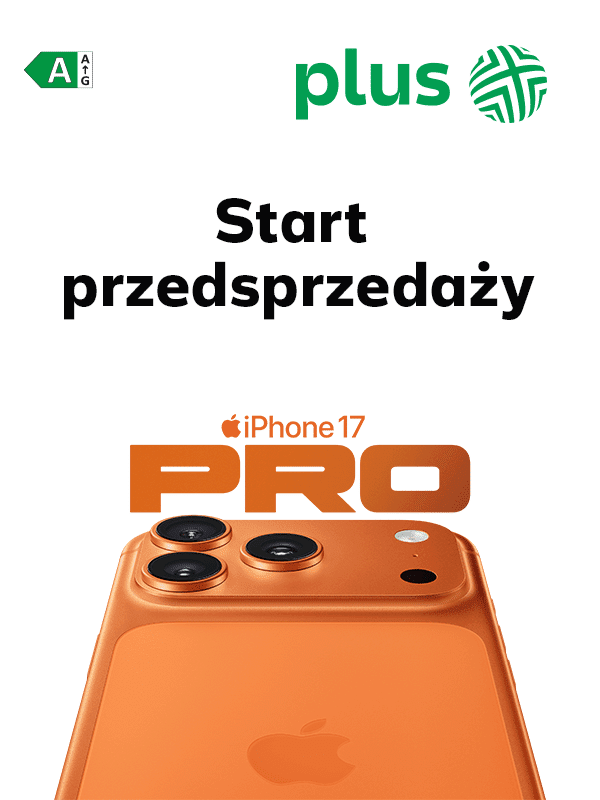Plus: Ruszyła przedsprzedaż najnowszych produktów Apple, w tym iPhone 17 Pro, iPhone 17 Pro Max, iPhone Air, iPhone 17. Plus, jako jedyny operator w Polsce oferuje abonamenty z pakietem Apple One, czyli czterema usługami Apple w ramach jednej wygodnej subskrypcji.
