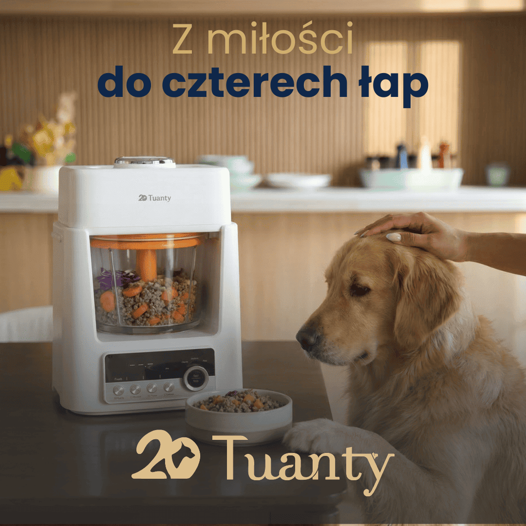 Tuanty: Na polski rynek wchodzi urządzenie, które zmienia sposób, w jaki właściciele karmią swoje czworonogi. Tuanty pozwala przygotować świeży posiłek dla psa lub kota w około 20 minut, łącząc gotowanie na parze i blendowanie w jednym procesie.